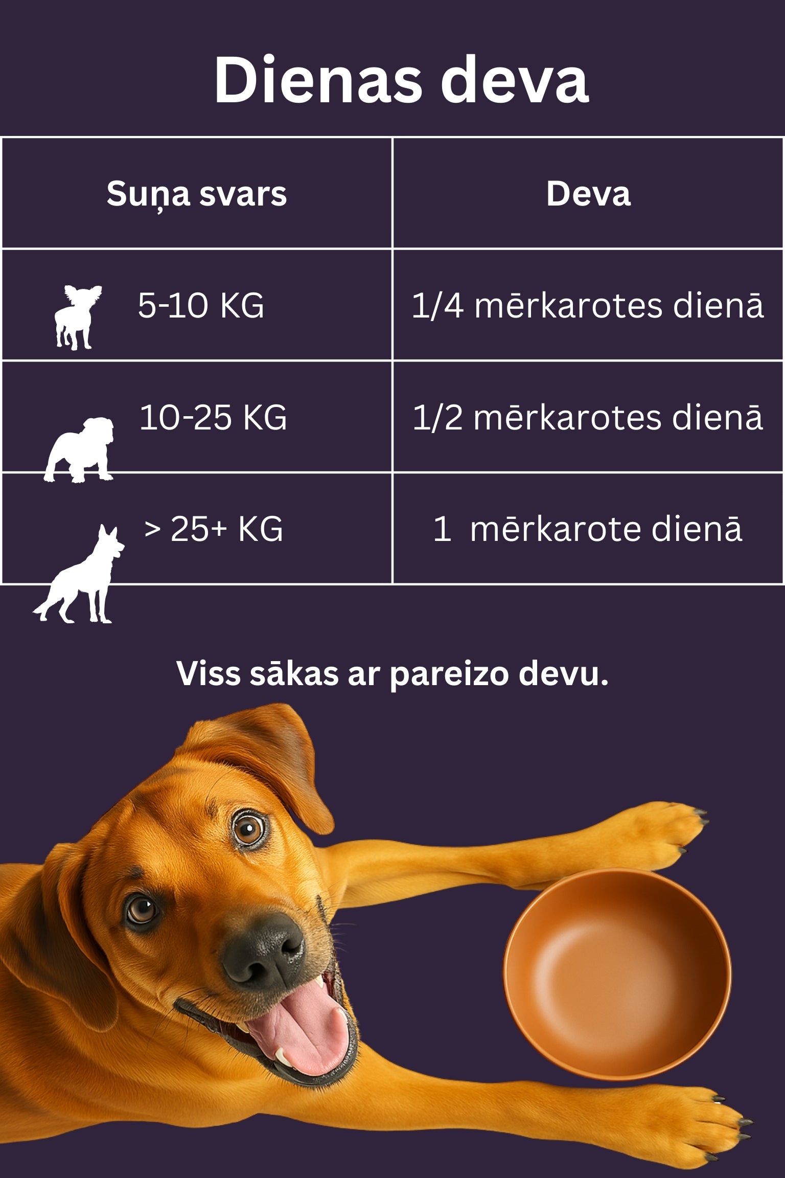 - Vienkārši sajauciet bezgaršīgo pulveri ar Jūsu suņa ikdienas barību – viņš to gandrīz nepamanīs!